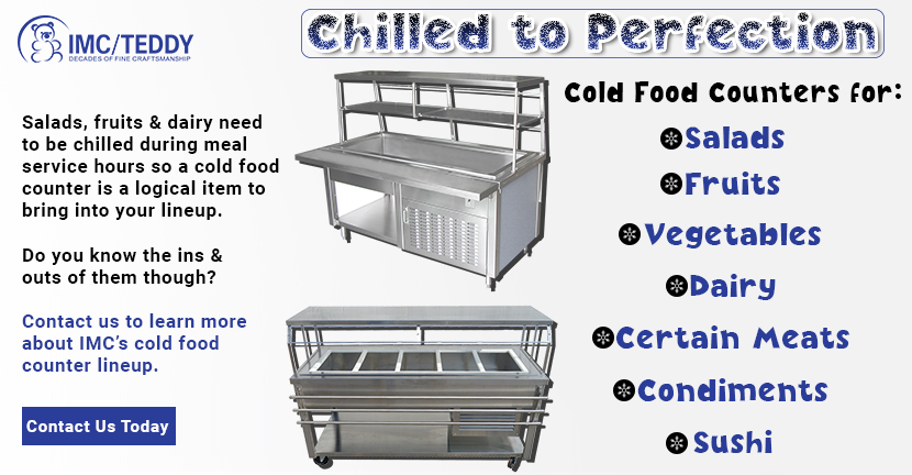 The winter season is here so it would only be appropriate to go over some of your most asked questions about cold food counters. Cold food counters are a meal service staple, mainly found in cafeteria/buffet operations. They are complex items, so naturally many questions are asked about them. IMC is ready to clear the air.
