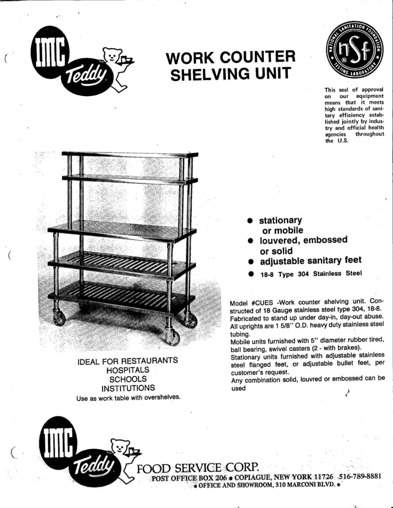 We’re continuing our history lessons this week with an interesting product released that was, at the time, an innovation in the foodservice industry. That product was Model #CUES – Work Counter Shelving Unit. One look at the product & you’ll see why it was considered a unique offering. What was it for exactly though?